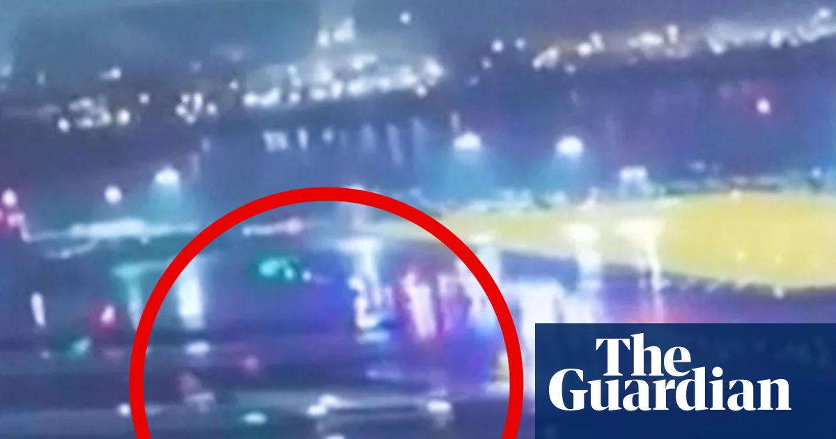 Video shows moments before Air Canada jet collides with a fire truck at LaGuardia Airport – video | US news